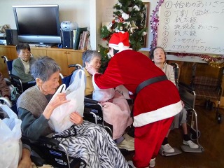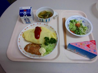 た。サンタさんからプレゼントをいただき、お昼にチキンやオム
