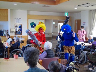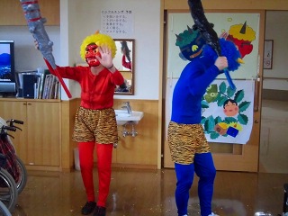 2月3日は節分です。ケアハウス上河原にも、赤鬼・青鬼が勢