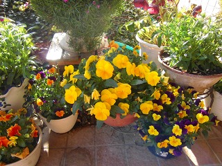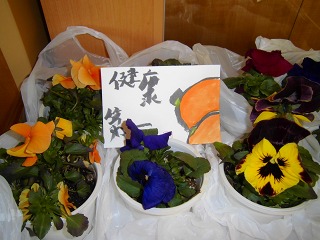 今日は、北小学校の児童と先生が、きれいなパンジーのお花