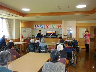 な祭りの由来やクイズを行い、甘酒や、ひなあられ、お昼