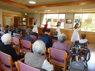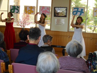 フラダンスの日笠先生のグループにおいでいただき、華や