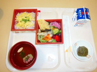 には、ちらしずし、はまぐりのお吸い物、三色ゼリーをいた