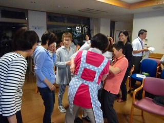 職員のグループで「なんくるないさー」による銭太鼓と「上河原