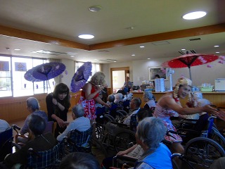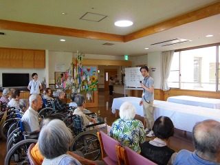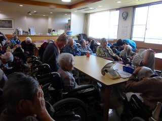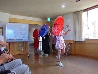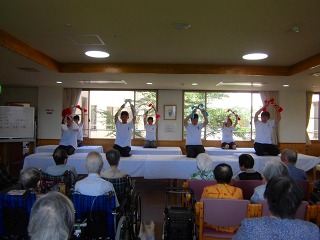 その後、職員による出し物(銭太鼓、昭和の歌謡ショー、多国