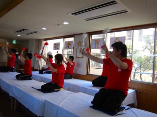 な演奏、演技に大拍手です。銭太鼓のグループ名もばっちり覚