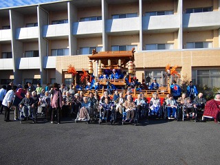 とにぎやかにだんじりが来ました。こどもたちの笑顔にうれしくな