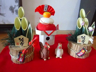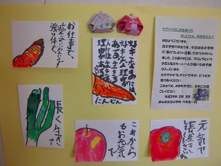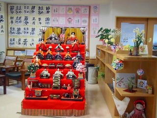 本日、雛祭りの会を開きました。玄関のひな人形は、