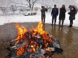 書初めやしめ縄飾りなどを焚き、「とんど」を行いました。