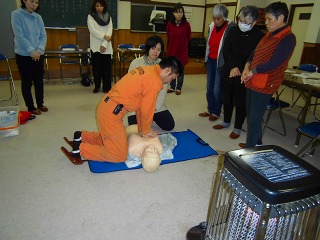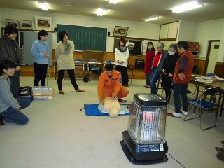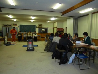 津山消防署の方を講師に迎え、小原会館で、小原婦人会の