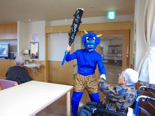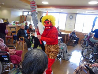 「鬼は外、福は内」と豆まきをしました。豆をまかれ、鬼は退