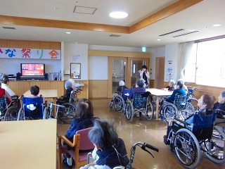利用者の皆さんは、クイズや「うれしいひな祭り」の