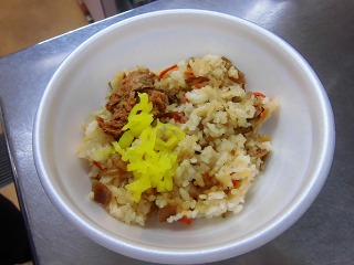 しました。アルファー化米飯の炊き込みご飯とお味噌汁