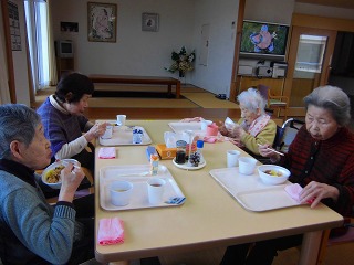 歌の合唱をしました。お昼には、ちらしずし、はまぐ