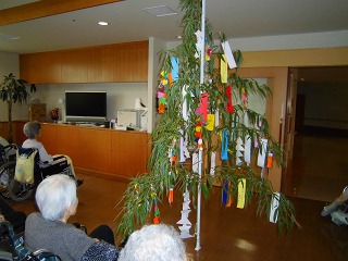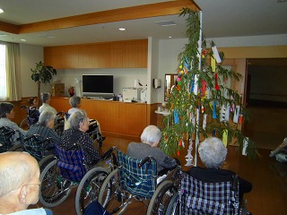 七夕の歌を歌い、お菓子とお茶で七夕会をしました。