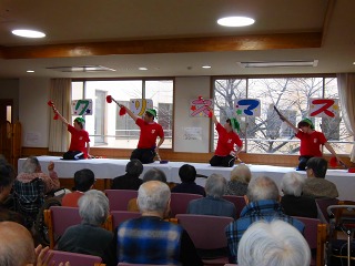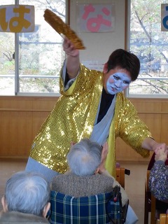 そして、職員の銭太鼓により出し物コーナーが始まりました。
