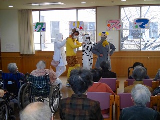 みんなで「うさぎとかめ」(もしもしかめよ)の替え歌も歌い
