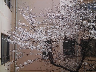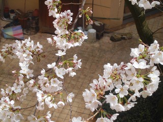 去年より5日早く3月19日に開花を始めた中庭の桜