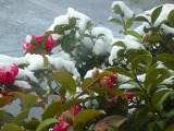 玄関脇の山茶花の赤が一層引き立って見えました。