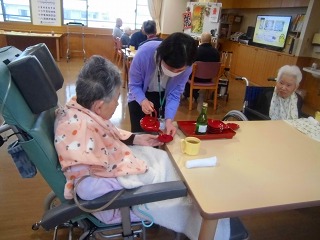 ご利用者には、お屠蘇と雑煮を召し上がっていただきました。