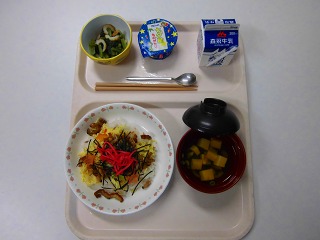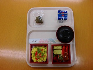 そして昼食は「ちらし寿司」「卵豆腐の吸い物」「小松菜と竹輪の辛し和え」
