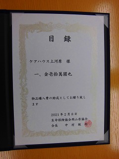 生命保険協会岡山県協会様から物品購入費の助成金をいただき、