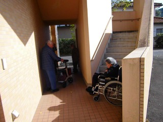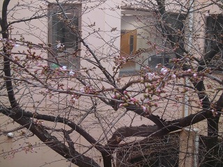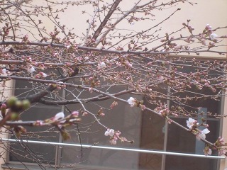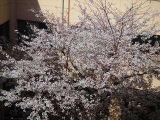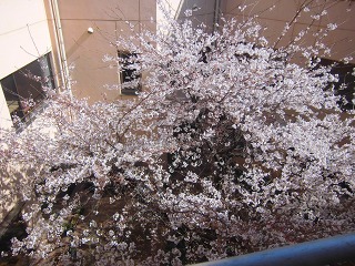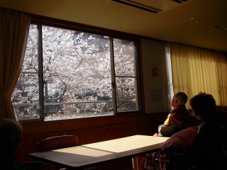 入居者の皆さんも、窓越しに花見を楽しんでおられます。