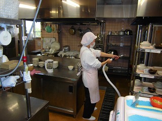 「1階の調理場から出火」との放送を合図に消火作業を行い、
