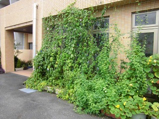 晴天続きだった7月には元気のなかったグリーンカーテンが、