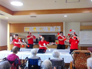 その後、職員による銭太鼓、利用者代表による歌の披露がありました。