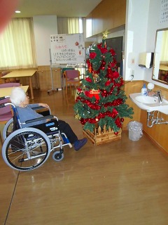 今日は利用者の代表と一緒にクリスマスツリーの飾りつけを行い、